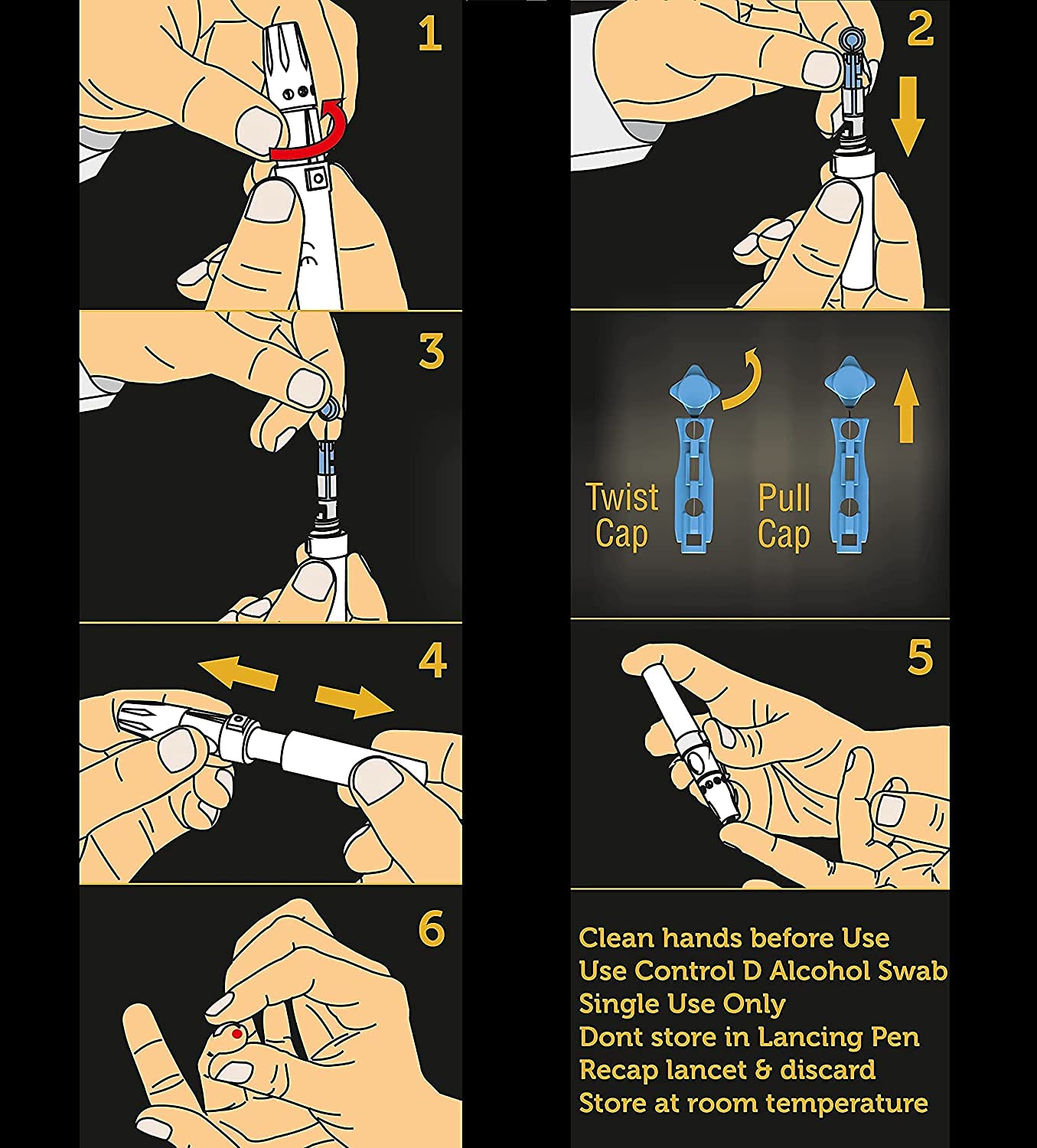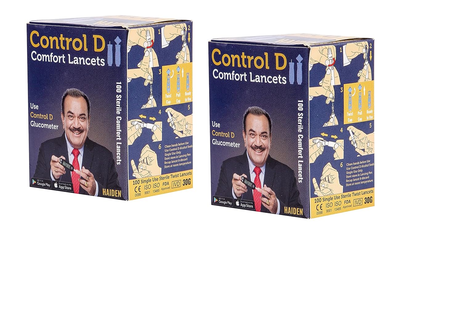 CONTROL-D Comfort Lancets are universal, single-use, sterile lancets used with a lancing device to obtain a small blood sample for glucose testing. They are designed for maximum comfort with a focus on minimizing pain during the pricking process.