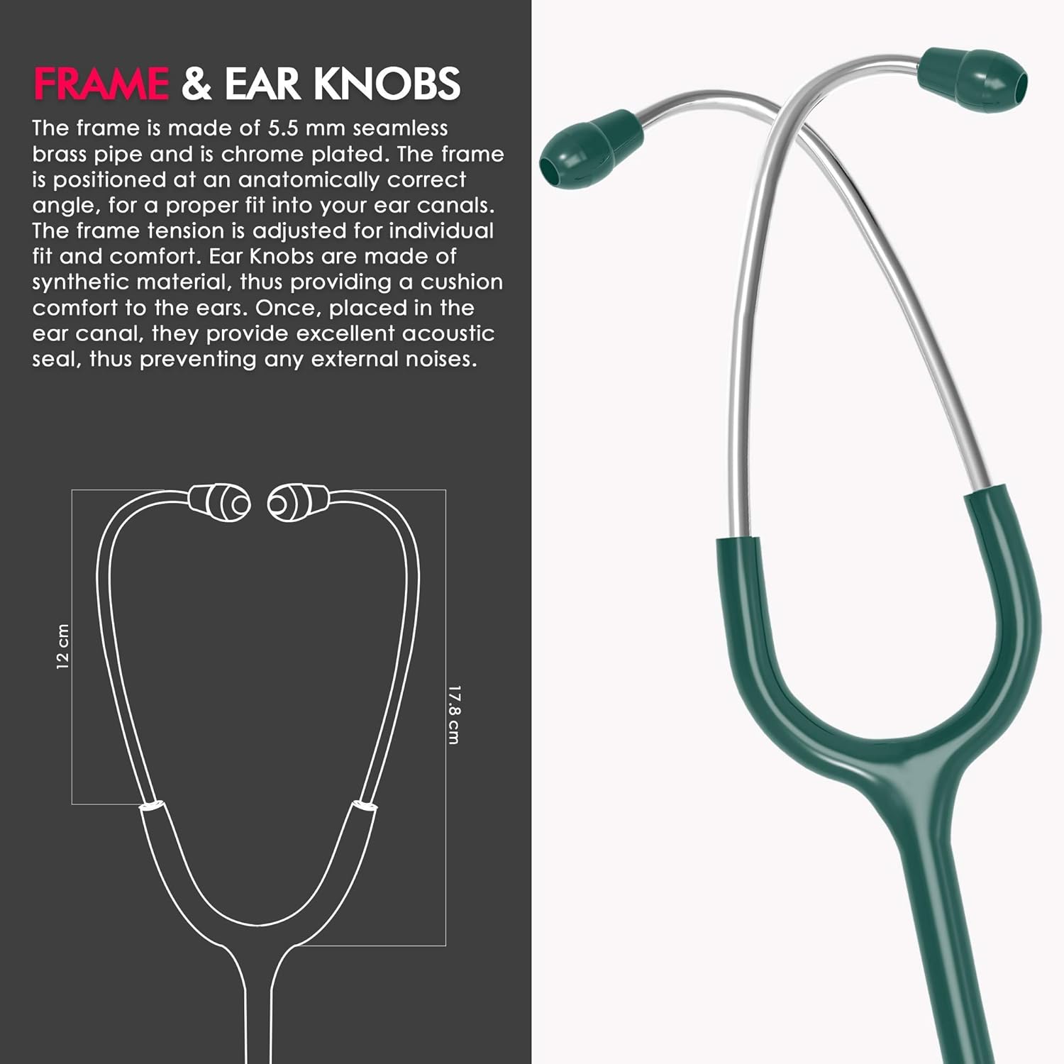 is a dual-head, latex-free acoustic stethoscope designed for general practitioners, nurses, and medical students. It features a double-sided stainless steel chest piece, with a large diaphragm for adults and a smaller one for pediatric patients.
