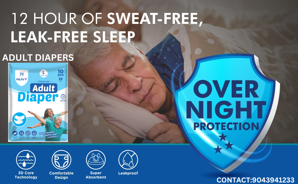 NUVY Diaper For Adult Tape Type For Unisex – 10’s Pack