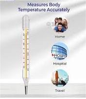- Scale: Markings printed on the glass indicating degrees in Celsius (35°C to 42°C) and/or Fahrenheit (94°F to 108°F)